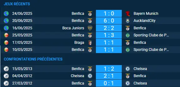 Les deux équipes ne se sont pas affrontées depuis plus de dix ans, ce qui rend toute comparaison avec leurs anciens matchs peu pertinente pour ce pronostic Benfica-Chelsea.