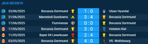 La force de Dortmund, c’est la gestion du tempo en phase éliminatoire. Le BVB augmente le rythme pour ces grands rendez-vous, même si l’écart au score est rarement large. Monterrey a déjà réussi son tournoi, mais sa défense sera beaucoup plus testée ici que face à River Plate ou Urawa.
