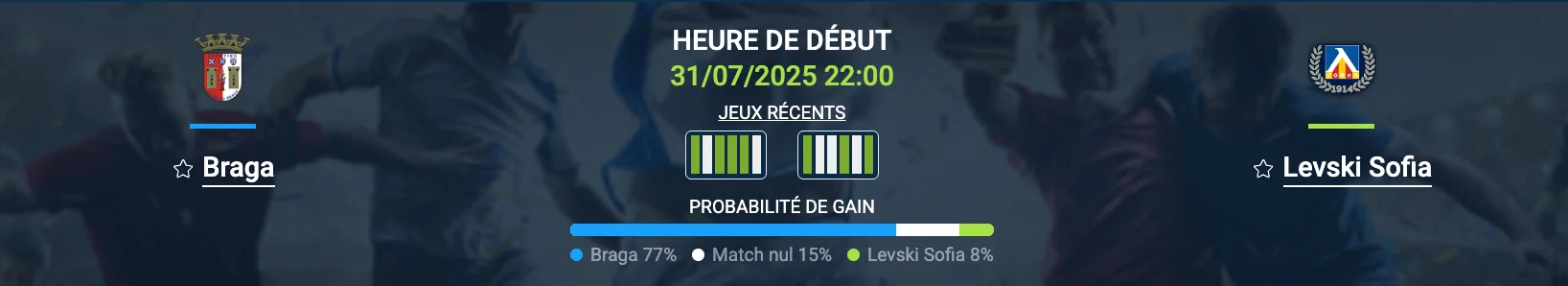 Braga reste favori, mais son manque de confiance offensive combiné à la solidité de Levski nous incite à privilégier une option prudente. Les Bulgares devraient, au minimum, éviter une lourde défaite. Notre pronostic Braga – Levski Sofia recommande donc Levski Sofia avec un handicap +2,5 pour assurer.