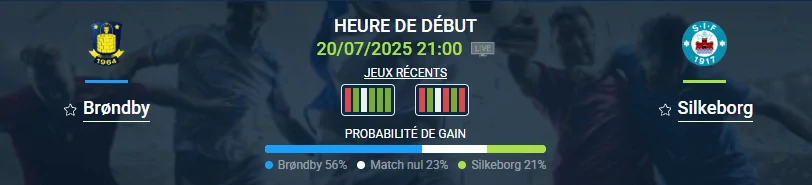 Le championnat du Danemark débute avec une affiche excitante : Brøndby reçoit Silkeborg dans un match qui promet du spectacle. Le pronostic Brøndby – Silkeborg attire toujours l’attention, ces deux équipes offrant régulièrement des rencontres ouvertes et offensives, où chaque camp parvient généralement à marquer.