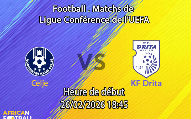Jeudi 26 février 2026, 18h45 — Stadion Z’dežele, Celje. Le match retour du barrage de UEFA Conference League 2025-26 s’annonce passionnant après la victoire dramatique 3-2 du NK Celje à Pristina, arrachée par un but de Matej Poplatnik à la 94e minute sur une contre-attaque fulgurante. Le KF Drita doit désormais remonter un déficit de 2-3 au Stadion Z’dežele — un chaudron où Celje affiche un bilan parfait de 4 victoires en 4 matchs, 12 buts marqués, 1 seul encaissé en PrvaLiga cette saison. Pour les statistiques complètes de Drita en Conference League, le site officiel de l’UEFA détaille chaque performance. Selon les cotes 1xBet, Celje est favori (~1.60), le nul autour de 3.90 et Drita au-delà de 5.50. Notre analyse : Celje se qualifiera confortablement — le leader de PrvaLiga est trop fort à domicile.