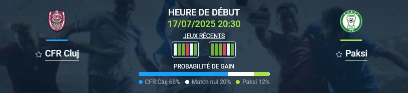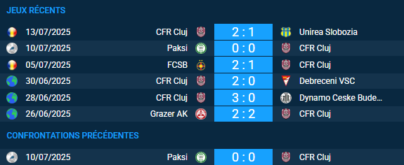 Le pronostic CFR Cluj-Paksi laisse attendre une rencontre serrée. Au match aller, les deux équipes ont terminé sur un score nul (0-0) en Hongrie. Désormais, tout se joue à Cluj. L’équipe locale espère profiter du soutien de son public et de sa solidité à domicile pour décrocher son ticket au tour suivant.