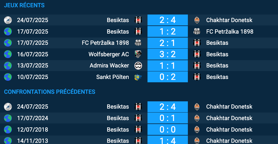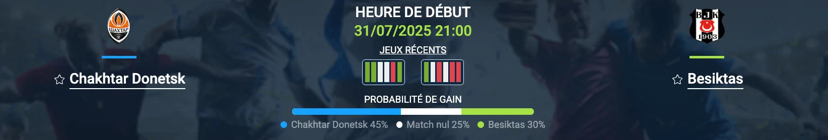 Le Chakhtar a fait le plus dur à l’aller et devrait aborder ce retour de façon plus prudente, en privilégiant défense et contre-attaques. Besiktas devra se découvrir, ce qui pourrait ouvrir des espaces pour les offensifs brésiliens du Chakhtar. Selon notre pronostic Chakhtar Donetsk – Besiktas, le pari “plus de 1,5 but pour le Chakhtar Donetsk” semble tout indiqué dans ce contexte.