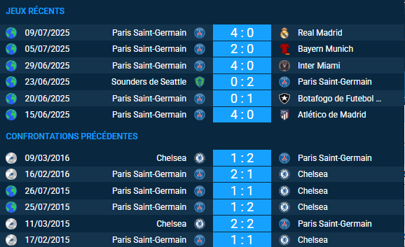 On aimerait voir une surprise, mais cela semble difficile. Chelsea doit sa place en finale à un calendrier favorable. Les Anglais n’ont pas battu de grand club. Le 13 juillet, ils affrontent la meilleure équipe d’Europe du moment.