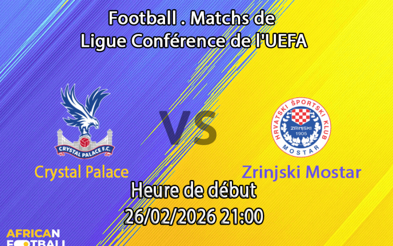 Jeudi 26 février 2026, 20h00 — Selhurst Park, Londres. Le match retour du barrage de UEFA Conference League 2025-26 met le Crystal Palace dans une position inconfortable : seulement un but d’avance (1-1 au match aller) face à un HSK Zrinjski Mostar qui n’a rien à perdre. Oliver Glasner est sous pression croissante après seulement 1 victoire sur les 14 derniers matchs des Eagles — une série noire qui a poussé les supporters à le cibler directement lors du déplacement en Bosnie. Pour les statistiques complètes de Palace en Conference League, le site UEFA reste la référence. Selon les cotes 1xBet, Crystal Palace est favori écrasant (~1.11), le nul autour de 9.00 et Zrinjski au-delà de 21.00. Notre analyse : Palace doit absolument gagner pour sauver sa saison européenne — et accessoirement le poste de Glasner.