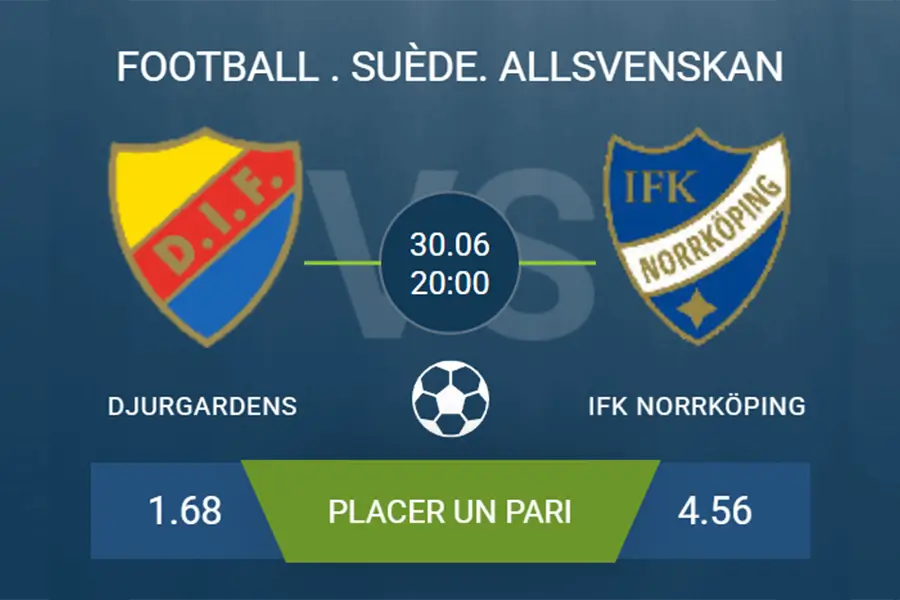 Le pronostic Djurgårdens–Norrköping s’annonce indécis entre deux équipes voisines au classement qui pratiquent un football débridé. Djurgården a le statut de favori à la maison (cote : 1.7 contre 4.9), mais Norrköping, combatif et prolifique en attaque, peut parfaitement déjouer les pronostics. Qui créera la surprise dans ce duel suédois programmé le 30 juin à 20h ?