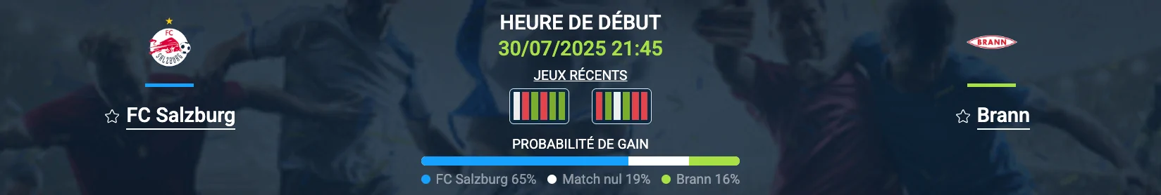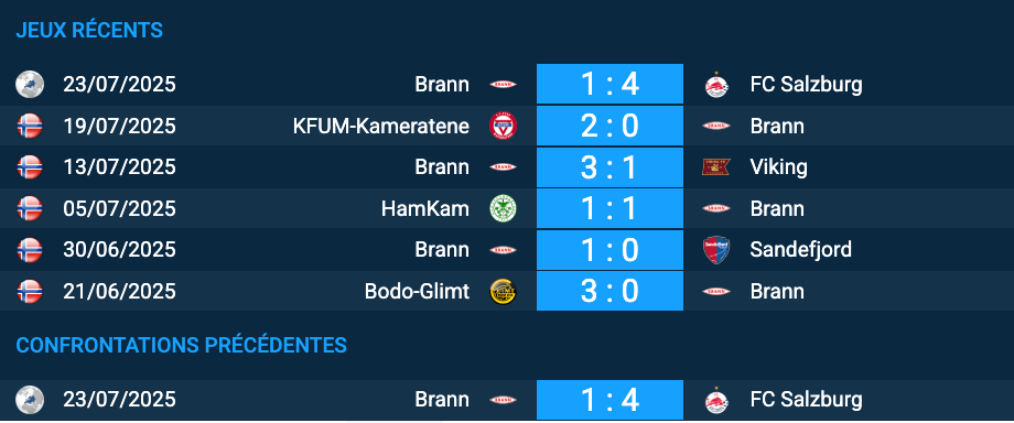 Malgré son large succès à l’aller, le FC Salzburg ne devrait pas prendre de risques inconsidérés au retour : la qualification est quasiment acquise. Toutefois, la fragilité récurrente de la défense autrichienne laisse espérer au moins un but norvégien. Notre pronostic FC Salzburg – Brann recommande donc le pari “plus de 1 but pour Brann”, un choix logique vu la dynamique des deux équipes.