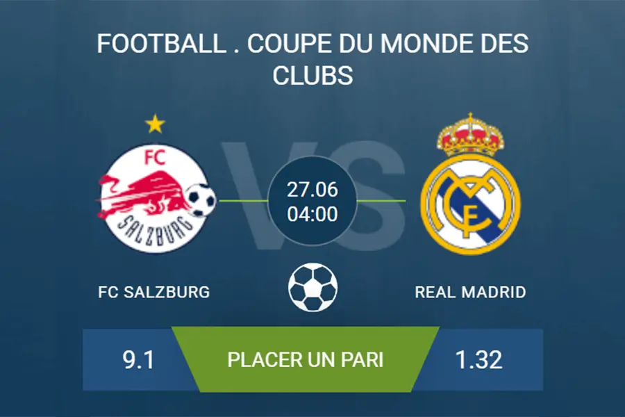 Le pronostic FC Salzburg-Real Madrid porte sur l’ultime journée de la phase de groupes du Mondial des clubs. Les Merengues n’ont besoin que d’un nul pour accéder aux playoffs, tandis qu’une victoire leur assure la première place du groupe. Le FC Salzburg a autant de points, mais une moins bonne différence de buts, ce qui complique sa tâche. Toutefois, le pronostic FC Salzburg-Real Madrid signale que les deux équipes pourraient se qualifier ensemble si elles font match nul 2-2 ou plus, ou si Al Hilal s’incline dans l’autre rencontre du groupe. Notre analyse pronostic FC Salzburg-Real Madrid explore tous les scénarios favorables.