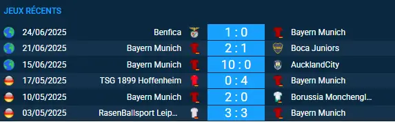 Le Bayern, placé dans un groupe largement à sa portée, n’a pas totalement rassuré. Un carton pour commencer face à Auckland City (10-0), puis une victoire arrachée contre Boca Juniors (2-1) grâce à un but tardif d’Olise, et enfin une défaite surprise contre Benfica (0-1) lors de la dernière journée. Résultat : une 2e place et quelques doutes sur la solidité des Munichois. Certains y voient un choix stratégique pour éviter Chelsea dès les huitièmes, mais cette stratégie pourrait s’avérer risquée face à un Flamengo solide et inspiré.