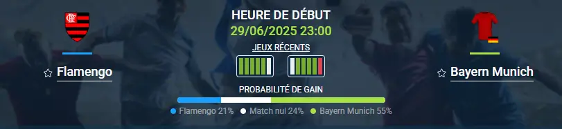 Le pronostic Flamengo-Bayern Munich promet l’une des plus belles affiches des huitièmes de finale du Mondial des clubs. Européens et Sud-Américains vont croiser le fer pour une place en quart, sous le soleil de Miami. Le Bayern, favori logique selon les bookmakers, va devoir hausser son niveau de jeu face à un Flamengo en pleine forme. Ce pronostic Flamengo-Bayern Munich sera-t-il marqué par une surprise brésilienne ? Décryptage des forces en présence et tendances pour vos paris.