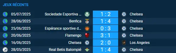 Les deux équipes rêvent du Mondial en finale, mais Chelsea semble supérieur sur presque tous les plans : effectif plus jeune, plus profond, avantages physiques et financiers. Fluminense s’appuie surtout sur son expérience défensive (Silva et Fábio cumulent 68 ans !).