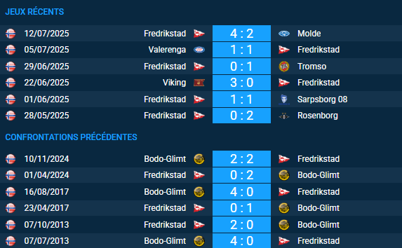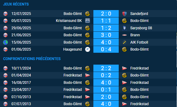 Pronostic Fredrikstad-Bodo-Glimt : confrontations directes