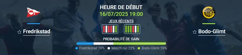 Fredrikstad occupe la 8e place d’Eliteserien (6 victoires en 14 matchs). Malgré des résultats irréguliers récemment (3 victoires sur 10), les “Rouge et blanc” marquent régulièrement et misent beaucoup sur la contre-attaque. À noter, Fredrikstad a marqué au moins un but lors de 9 de ses 10 dernières rencontres face à Bodo-Glimt. Défensivement, la moyenne de buts encaissés dépasse 1 par match, ce qui contribue à la dynamique “over” dans le pronostic Fredrikstad-Bodo-Glimt.