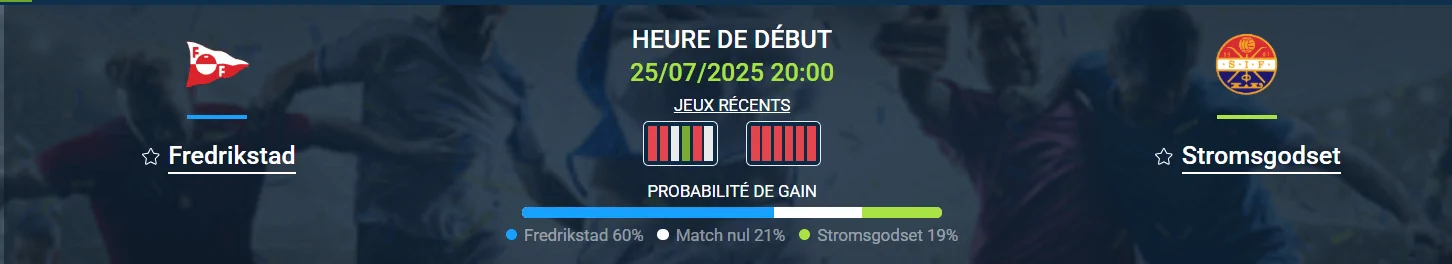 Cette saison, Fredrikstad réalise des performances moyennes et occupe la huitième place du championnat norvégien. L’équipe mise sur la possession du ballon et des transitions rapides, mais ses dernières prestations offensives révèlent une baisse de forme : moins de 1,5 but inscrit lors de sept de ses huit derniers matchs. Défensivement, Fredrikstad reste solide à domicile en concédant peu d’occasions. Les hôtes abordent ce pronostic Fredrikstad – Stromsgodset avec le statut de favori.