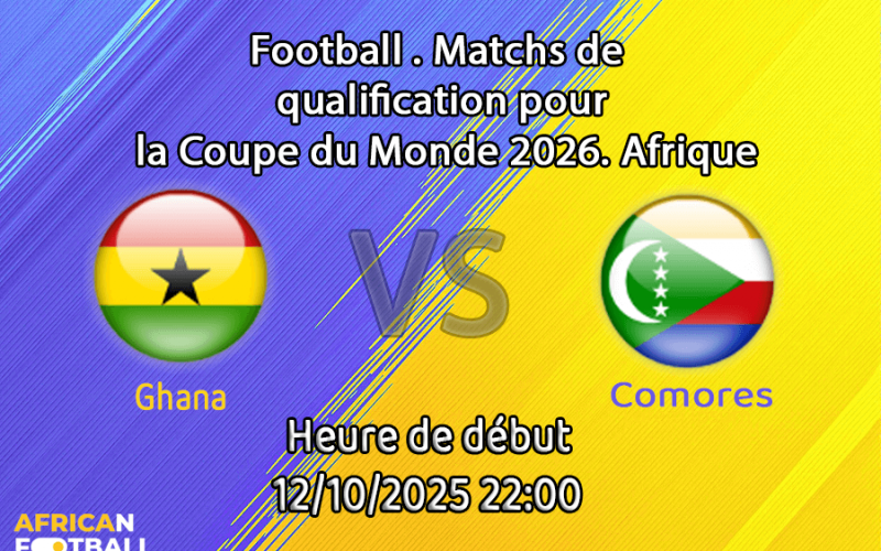 Le 12 octobre, au Stade d’Accra, l’équipe du Ghana accueillera l’Archipel des Comores dans le cadre des éliminatoires de la Coupe du Monde 2026. Dans ce Pronostic Ghana-Archipel des Comores, les hôtes chercheront à consolider leur première place dans le groupe I pour obtenir leur qualification directe au tournoi principal. Le Ghana arrive au match en grande forme : l’équipe a fait preuve d’une forte attaque lors de ses derniers matchs, inscrivant de nombreux buts tout en encaissant peu. De leur côté, les Comores, quatrième du groupe, n’ont plus de chances de qualification, mais chercheront à terminer les qualifications sur une bonne note. Sur le terrain, une domination offensive des hôtes est attendue, tandis que les visiteurs tenteront de profiter des opportunités de contre-attaque.