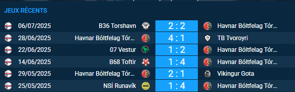 Lors du dernier match de championnat, Tórshavn a partagé les points avec B36 Tórshavn (2-2) :