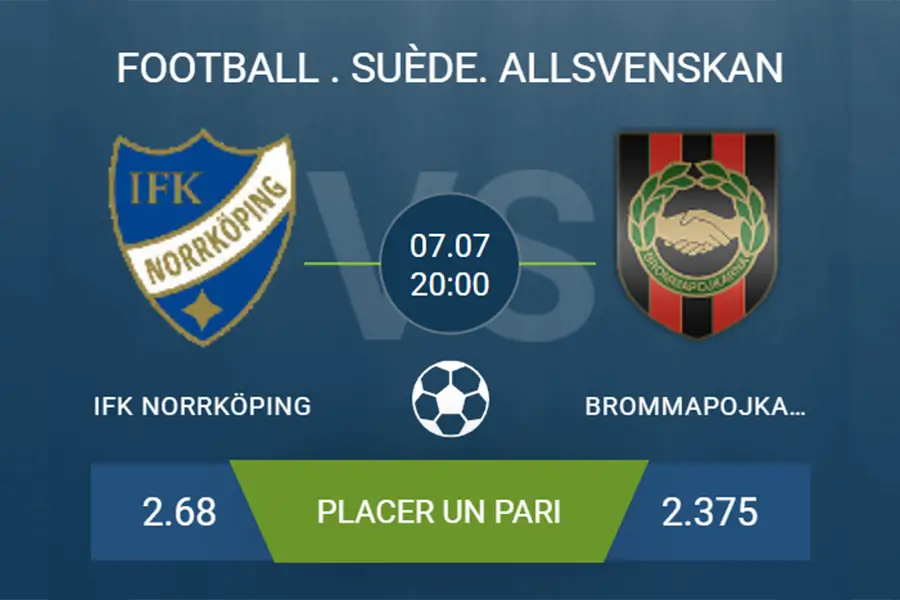 Le pronostic IFK Norrköping – Brommapojkarna s’annonce indécis, avec des cotes proches : 2,80 pour les locaux et 2,38 pour les visiteurs. L’issue de la rencontre pourrait dépendre de certaines décisions arbitrales. Le match aura lieu le 7 juillet à 20h00, dans le cadre de l’Allsvenskan.