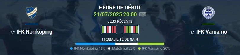 Comment les décisions arbitrales influeront-elles sur le déroulement et l’issue de la rencontre ? Cela deviendra clair après 90 minutes du match entre l’IFK Norrköping et l’IFK Varnamo. Ce duel d’Allsvenskan est programmé pour le 21 juillet à 20h00. À l’heure actuelle, les bookmakers proposent les cotes suivantes : 2,15 et 3,11.