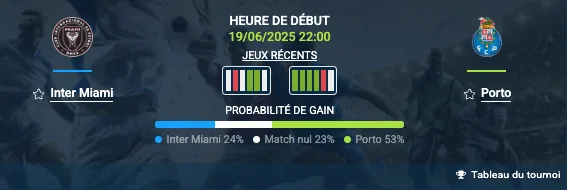 Nous espérons que les rencontres de la première journée ont servi de réglage pour les deux clubs. Il est peu probable que des équipes avec des leaders comme Lionel Messi et Luis Suárez d’un côté, ainsi que Sammu Aghehowa et Rodrigo Mora de l’autre, restent muettes plus d’un match. Selon les cotes des bookmakers, Porto est favori pour cette rencontre. Toutefois, à notre avis, la cote pour l’Inter Miami est nettement surestimée.