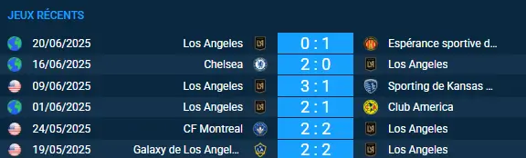 Los Angeles n’a rejoint la Coupe du monde des clubs qu’à la dernière minute, remplaçant León, mais n’a pas réussi à se hisser au niveau du tournoi. Deux défaites lors des deux premiers tours : d’abord 0-2 contre Chelsea, un résultat logique, puis un revers surprenant 0-1 face à l’Espérance. Pourtant favoris à domicile, les Américains n’ont pas su dominer et ont créé moins d’occasions que leurs adversaires. Dans les arrêts de jeu, Los Angeles a manqué un penalty salvateur par Denis Bouanga. Même un nul laissait peu d’espoir, mais cette défaite a définitivement mis fin à leurs rêves de play-off.