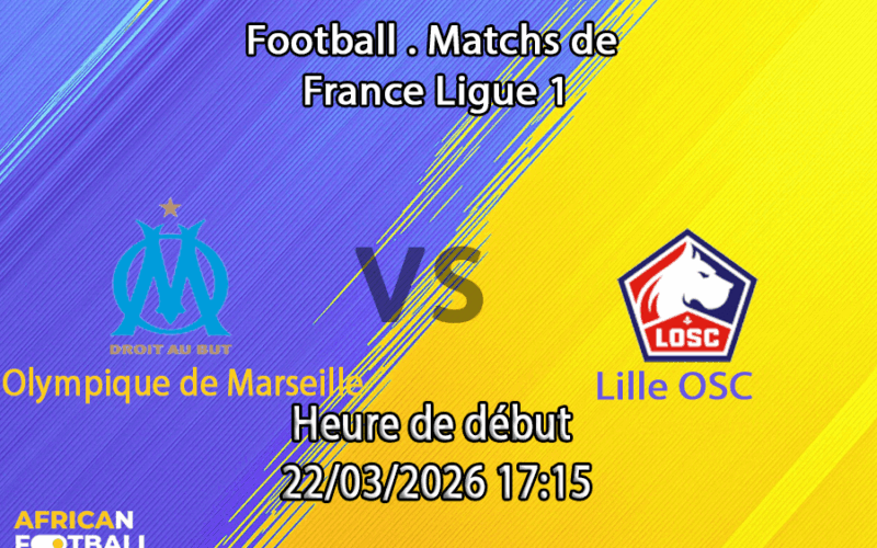 Dimanche 22 mars 2026, 17h15 CET — Orange Velodrome, Marseille. La 27e journée de Ligue 1 oppose l’Olympique de Marseille (3e, 49 pts, 15V-4N-7D) au Lille OSC (5e, 44 pts, 13V-5N-8D) dans un choc decisif pour le podium et les places europeennes. L’OM est en excellente forme avec 3 victoires L1 consecutives (3-2 Lyon, 0-1 Toulouse ext., 1-0 Auxerre) tandis que Lille arrive apres une elimination en Europa League par Aston Villa (0-1 dom., ext. 19 mars). Les cotes : Marseille ~1.88-1.93, Nul ~3.40-3.65, Lille ~3.80-3.94 — l’OM est le favori net au Velodrome. Arbitre : Benoit Bastien.