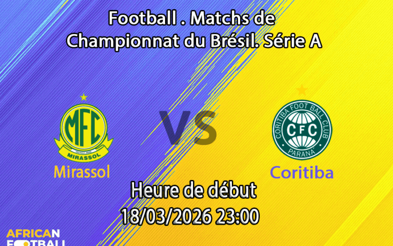 Mercredi 18 mars 2026, 23h00 — Estádio Municipal José Maria de Campos Maia (Maião), Mirassol. La 6e journée du Brasileirão Série A 2026 oppose le Mirassol (12e, 6 pts, 1V-3N-1D, invaincu à domicile) au Coritiba (~15e-17e, en difficulté) dans un duel entre un promu modeste et un club en quête de stabilité. Les cotes : Mirassol ~1.74-1.78, Nul ~3.58, Coritiba ~4.43-5.75. APWin prédit une victoire Mirassol + Under 2.5. Le H2H est nettement favorable à Mirassol : le dernier affrontement s’est soldé par un 4-1 en faveur de Mirassol. Bahia (4e, 11 pts) et Palmeiras (2e, 12 pts) sont aussi en action cette semaine. La donnée choc : Mirassol a BTTS dans 100% de ses matchs Liga — le club n’a jamais gardé un clean sheet cette saison.