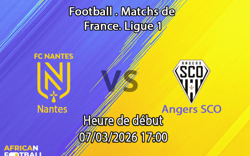Samedi 7 mars 2026, 16h00 — Stade de la Beaujoire, Nantes. La 26e journée de Ligue 1 oppose le FC Nantes (17e, 17 pts, 4V-5N-15D) à Angers SCO (12e, 29 pts, 8V-5N-11D) dans un derby de l’Ouest crucial pour le maintien des Canaris. Nantes est en pleine catastrophe : 4 défaites sur les 5 derniers matchs (LLLWL), 17e sur 18 avec seulement 17 pts — à 4 points de Metz, bon dernier (13 pts). Le bilan domicile est horrifiant : 2V-2N-8D en 12 matchs, 12 marqués et 22 encaissés (-10). Angers, 12e avec 29 pts, a infligé une gifle 4-1 à Nantes lors du match aller le 12 décembre 2025. WinComparator donne Nantes favori à 32,3%, Angers à 44,7% et nul à 23%. Notre analyse : malgré le bilan domicile désastreux de Nantes, la dynamique du maintien et la faiblesse d’Angers en déplacement (2V-3N-7D, 0,50 but/match) rendent ce match ouvert.