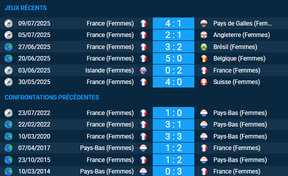 Notre pronostic Pays-Bas (Femmes)-France (Femmes) : plus de 2,5 buts dans le match.