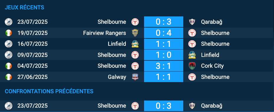 Shelbourne était invaincu depuis six matchs avant d’affronter Qarabağ mais la réalité européenne est tout autre. Déjà relégué à 14 points du leader dans son championnat, l’équipe a souffert face à une formation bien plus expérimentée sur la scène continentale. L’obstacle Qarabağ, à ce stade, s’est avéré inaccessible.