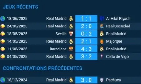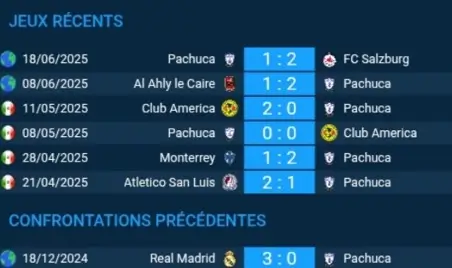 Pronostic Real Madrid-Pachuca : historiques des confrontations