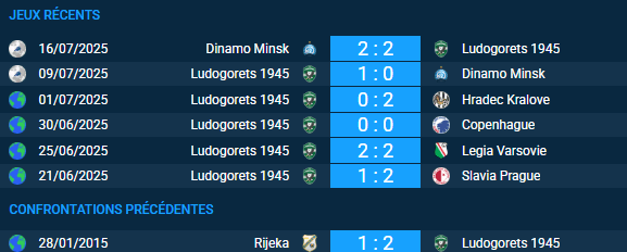 Aucun match officiel n’a encore opposé Rijeka à Ludogorets.