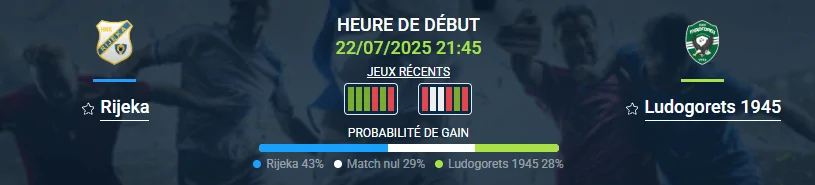 Cependant, c’est bien Rijeka qui est considérée comme le favori pour le match aller à domicile, au stade HNK Rijeka Rujevica. Le pronostic Rijeka – Ludogorets 1945 s’annonce donc serré et la prudence s’impose : tout pourrait dépendre de la prestation de Rijeka devant ses supporters.
