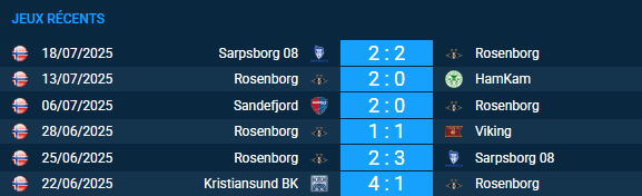 Bien qu’il ne soit plus le géant européen des années 90, Rosenborg conserve une structure solide et une homogénéité dans son jeu. Actuellement cinquième du championnat norvégien, l’équipe vient d’enchaîner un nul spectaculaire 2-2 chez Sarpsborg, démontrant ses atouts offensifs (3 tirs cadrés) mais aussi certaines fragilités défensives. À domicile, Rosenborg reste une véritable force, capable d’imposer un pressing élevé et de multiplier les attaques placées. Les attentes sont grandes autour du club pour ouvrir cette campagne européenne avec éclat.