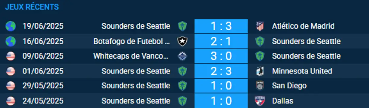 Seattle Sounders et le PSG ne se sont jamais affrontés auparavant.