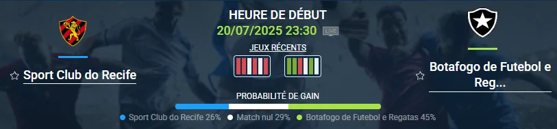 La 15e journée du championnat du Brésil propose une rencontre déséquilibrée sur le papier : Sport Club do Recife reçoit Botafogo, avec l’espoir de stopper une série noire qui dure depuis le début de saison. Ce pronostic Sport Club do Recife – Botafogo s’annonce crucial pour les deux équipes mais surtout pour Recife, lanterne rouge, qui cherche enfin une première victoire.