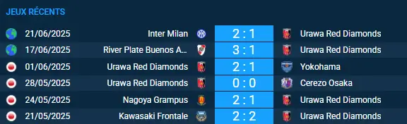 Pronostic Urawa Red Diamonds-Monterrey : confrontations directes