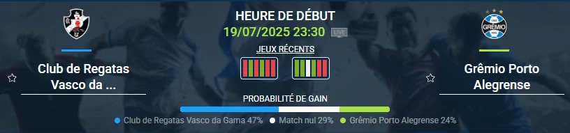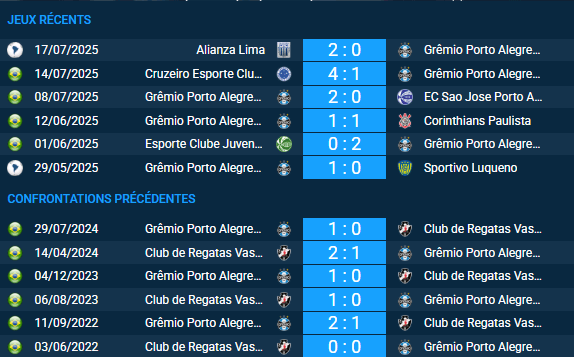 Statistiques : pronostic Vasco da Gama – Grêmio Porto Alegrense
